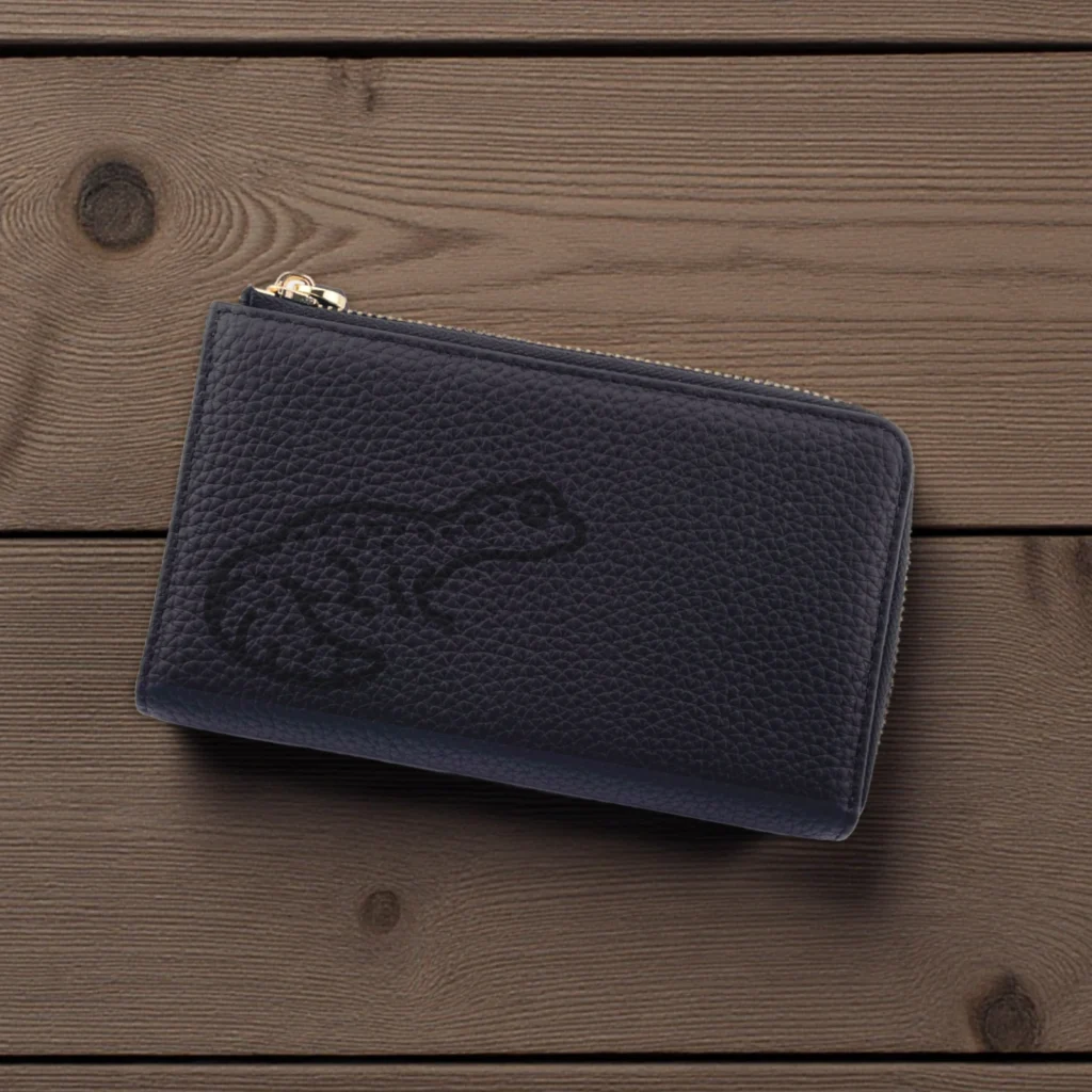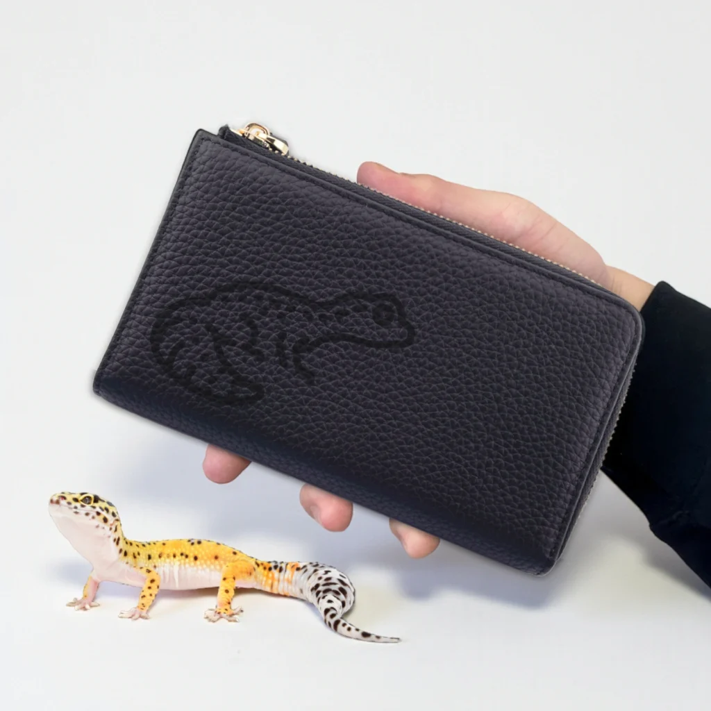 デフォルメしたレオパのデザインを刻印した「他にない」革財布です。